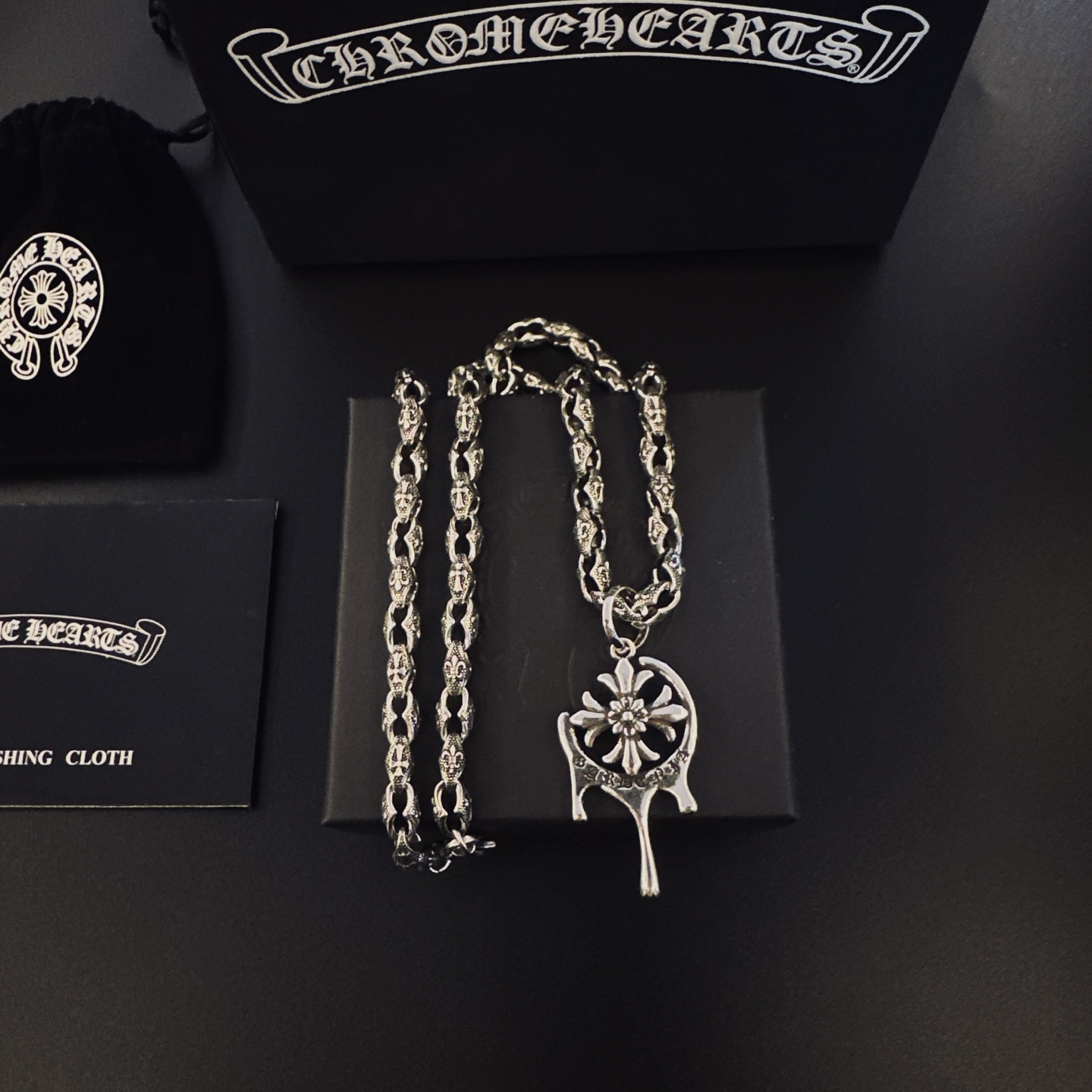 This jewelry is AAAAA 1:1 quality (superb). Materials used are identical to the original ones. Chrome Hearts trademark marks are indistinguishable to the authentic. Photos take by actual jewelry, what you receive will be 100% same with our photos.