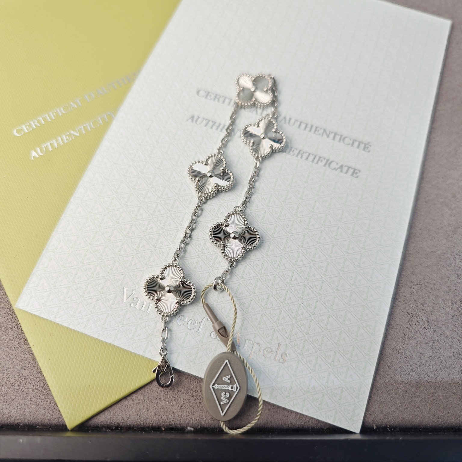 This jewelry is AAAAA 1:1 quality (superb). Materials used are identical to the original ones. Van Cleef & Arpels trademark marks are indistinguishable to the authentic. Photos take by actual jewelry, what you receive will be 100% same with our photos.