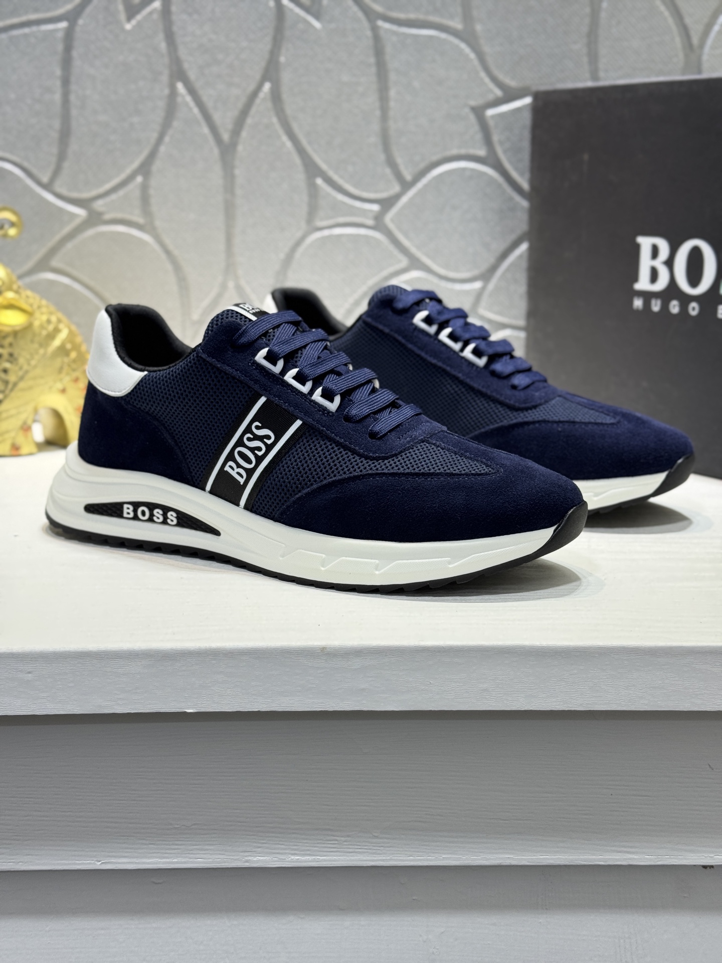 This shoes is AAAAA 1:1 quality (superb). Materials used are identical to the original ones. BOSS trademark marks are indistinguishable to the authentic. Photos take by actual shoes, what you receive will be 100% same with our photos.